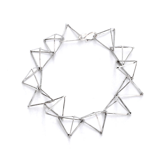 Sculptural handmade Sterling silver triangle bracelet. Triangles graduate in sizes small to large.