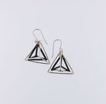 2 Triangle earrings in hand made Sterling silver with a 3D printed hand dyed black nylon triangle nesting inside.