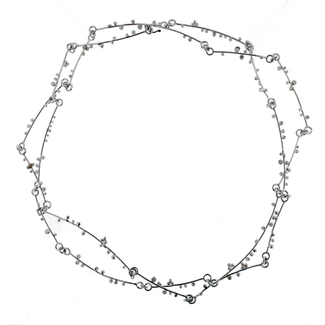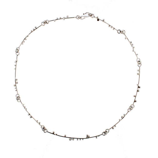 Handmade Sterling silver "branches" with bud-like fused spheres, joined by Sterling silver jump rings, and featuring a Sterling silver 'S' hook closure.