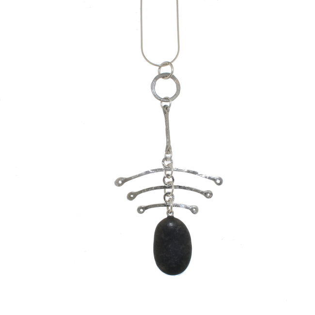 The STICKS & STONES collection is made up of hand forged and cast Sterling silver elements ("sticks" and "bones"), combined with natural stones from the rivers, lakes, and oceans of Ontario and British Columbia, as well as turquoise and Baltic amber.
