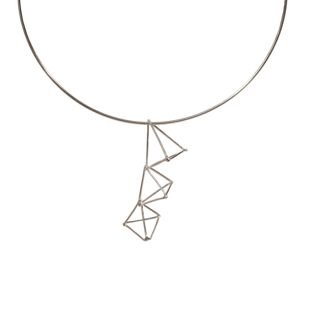 Sculptural handmade pendants with three cascading Sterling silver triangles.