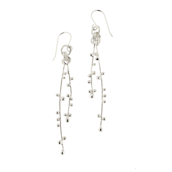 Handmade Sterling silver with 2 "branches" with bud-like fused spheres.