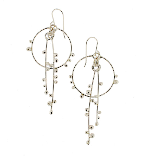 Handmade Sterling silver with 2 "branches" with bud-like fused spheres suspended from a circular "bloom".