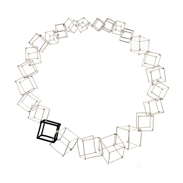 CUBE - WHITE & BLACK 36" Cube Necklaces feature handmade Sterling silver cubes accented with 3D printed hand dyed BLACK nylon cubes and are available in 3 variations: