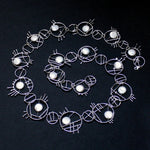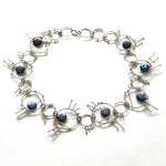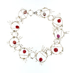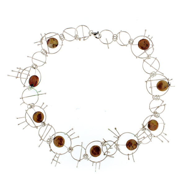 Pearl in wheel necklace, sculptural, hand made sliver wheels with coin pearls, available in lenghts 16" to 36", designed by Elizabete Ludviks
