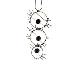 Pearl in wheel pendant, sculptural, hand made sliver wheel with coin pearl, cascading from large to small on snake chain, available in wheel sizes small to large, designed by Elizabete Ludviks