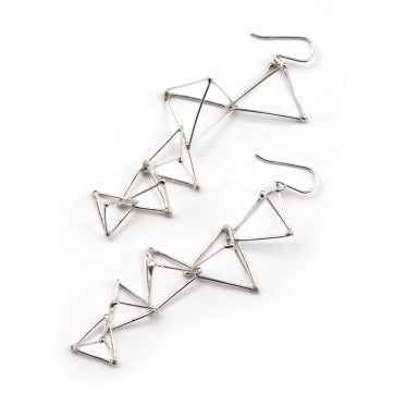 Sculptural handmade earrings with 5 cascading Sterling silver triangles.
