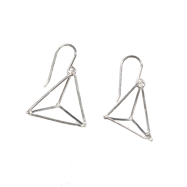 Sculptural hand made Sterling silver single triangle earrings.