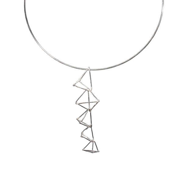 Sculptural handmade pendants with five cascading Sterling silver cubes.