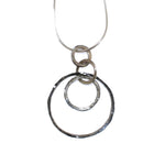 Inspired by the Mid Century mobiles of Alexander Calder and the natural world around us, the series consists of *MISMATCHED* pairs of earrings, each with a visual balance, as well as pendants on Sterling silver fine link or snake chains, and necklaces on hand-forged Sterling silver neck torques.